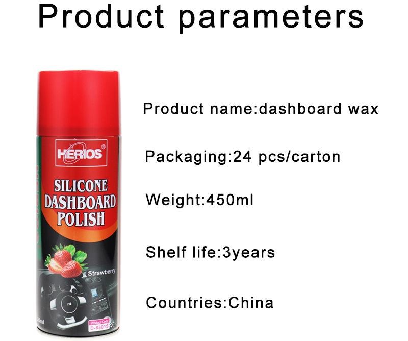 450ml herios dashboard polish wax spray for car keeps the car dashboard surface looking like new, helps to scrub and restore your car's dashboard. No need to worry about over spray, it wipes away cleanly, leaving no residue behind and only a fresh scent. It can increase surface glossiness and remove dirt.