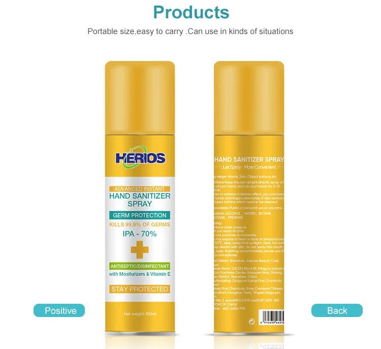 Product | 100ml kill 99% of bacteria and viruses hand sanitizer disinfectant antibacterial aerosol spray |