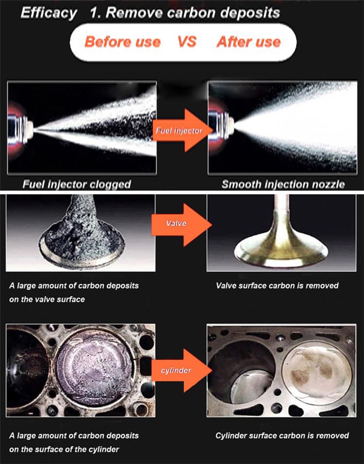 It’s suitable for gasoline vehicles and diesel vehicles. It can clean up the gum and carbon of fuel injection system.