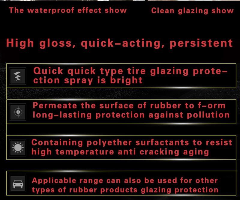 Herios® Tire shine spray leaves a deep, black, rich shine. It can quickly penetrate, lifts and releases dirt and road grime leaving behind a rich, dark shine. Prevent tires from being aging, cracking, colour fading. Clean your tires and give them a long-lasting shine. It is harmless to the car tires.